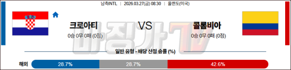 2026-03-27 국제친선경기 크로아티아 콜롬비아 해외축구분석 무료중계 스포츠분석