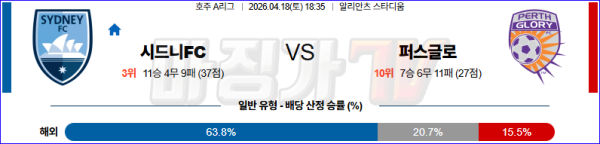 2026-04-18 호주 A리그 시드니 FC 퍼스 글로리 FC 해외축구분석 무료중계 스포츠분석