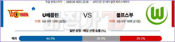 2026-04-18 분데스리가 우니온베를린 VfL 볼프스부르크 해외축구분석 무료중계 스포츠분석