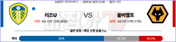 2026-04-18 프리미어리그 리즈 유나이티드 FC 울버햄튼 해외축구분석 무료중계 스포츠분석