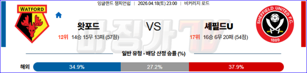 2026-04-18 잉글랜드 챔피언쉽 왓포드 셰필드 유나이티드 해외축구분석 무료중계 스포츠분석