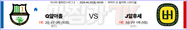 2026-04-20 AFC 챔피언스리그 2 알 아흘리 도하 알 후세인 SC 해외축구분석 무료중계 스포츠분석