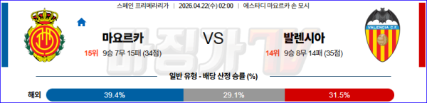 2026-04-22 라리가 RCD 마요르카 발렌시아 해외축구분석 무료중계 스포츠분석