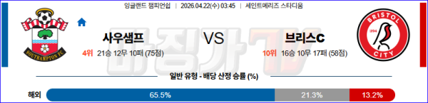 2026-04-22 잉글랜드 챔피언쉽 사우샘프턴 브리스톨 시티 FC 해외축구분석 무료중계 스포츠분석