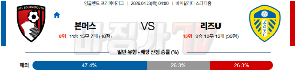 2026-04-23 프리미어리그 본머스 리즈 유나이티드 FC 해외축구분석 무료중계 스포츠분석