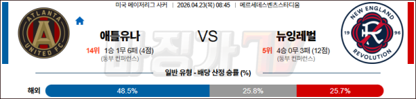 2026-04-23 MLS 애들레이드 유나이티드 FC 뉴잉글랜드 레볼루션 해외축구분석 무료중계 스포츠분석