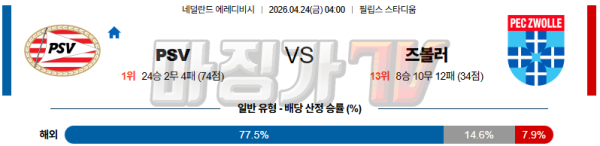2026-04-24 에레디비지 PSV 에인트호벤 FC 즈볼레 해외축구분석 무료중계 스포츠분석
