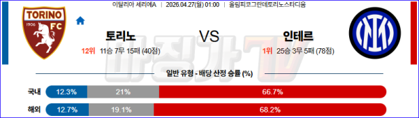 2026-04-27 세리에 A 토리노 FC 인터 밀란 해외축구분석 무료중계 스포츠분석