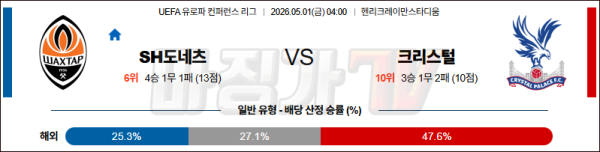 2026-05-01 UEFA 유로파컨퍼런스 샤흐타르 도네츠크 크리스탈 팰리스 해외축구분석 무료중계 스포츠분석