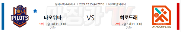 12월 25일 동아시아 슈퍼리그(남) 타오위안 파우이안 파일럿 히로시마 드래곤플라이 국내외농구분석 스포츠분석