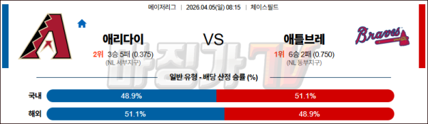 2026-04-05 MLB 애리조나 애틀랜타 MLB분석 무료중계 스포츠분석