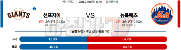 2026-04-03 MLB 샌프란시스코 뉴욕메츠 MLB분석 무료중계 스포츠분석
