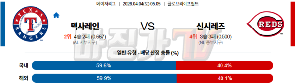 2026-04-04 MLB 텍사스 신시내티 MLB분석 무료중계 스포츠분석