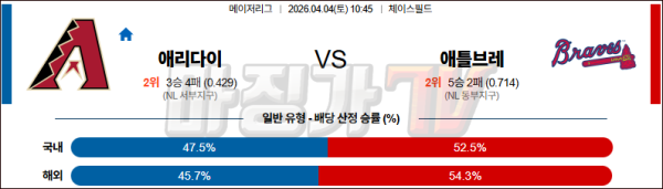 2026-04-04 MLB 애리조나 애틀랜타 MLB분석 무료중계 스포츠분석