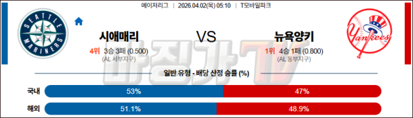 2026-04-02 MLB 시애틀 뉴욕양키스 MLB분석 무료중계 스포츠분석