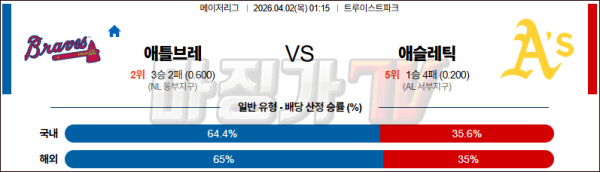 2026-04-02 MLB 애틀랜타 애슬레틱스 MLB분석 무료중계 스포츠분석