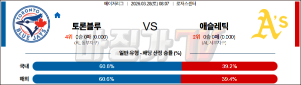 2026-03-28 MLB 토론토 애슬레틱스 MLB분석 무료중계 스포츠분석