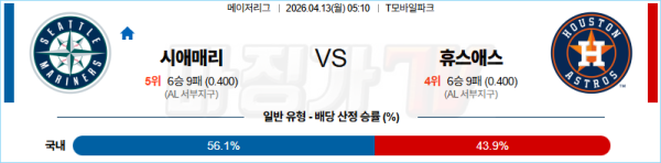 2026-04-13 MLB 시애틀 휴스턴 MLB분석 무료중계 스포츠분석