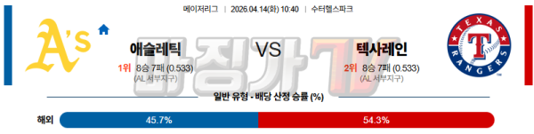 2026-04-14 MLB 애슬레틱스 텍사스 MLB분석 무료중계 스포츠분석