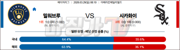 2026-03-29 MLB 밀워키 시카고W MLB분석 무료중계 스포츠분석