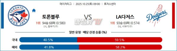 2025-10-25 MLB 토론토 LA다저스 MLB분석 무료중계 스포츠분석