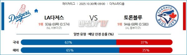 2025-10-30 MLB LA다저스 토론토 MLB분석 무료중계 스포츠분석