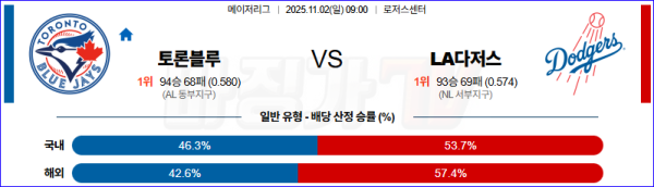 2025-11-02 MLB 토론토 LA다저스 MLB분석 무료중계 스포츠분석