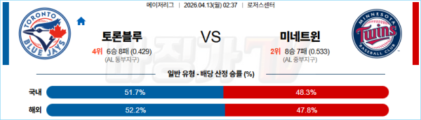 2026-04-13 MLB 토론토 미네소타 MLB분석 무료중계 스포츠분석