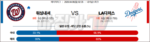 2026-04-06 MLB 워싱턴 LA다저스 MLB분석 무료중계 스포츠분석