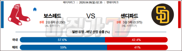 2026-04-06 MLB 보스턴 샌디에이고 MLB분석 무료중계 스포츠분석