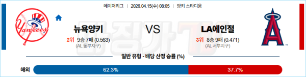 2026-04-15 MLB 뉴욕양키스 LA에인절스 MLB분석 무료중계 스포츠분석