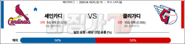2026-04-16 MLB 세인트루이스 클리블랜드 MLB분석 무료중계 스포츠분석