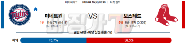 2026-04-16 MLB 미네소타 보스턴 MLB분석 무료중계 스포츠분석