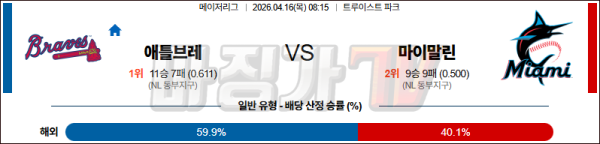 2026-04-16 MLB 애틀랜타 마이애미 MLB분석 무료중계 스포츠분석