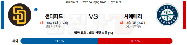 2026-04-16 MLB 샌디에이고 시애틀 MLB분석 무료중계 스포츠분석