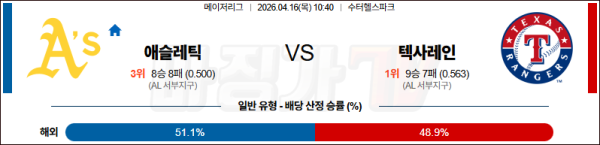 2026-04-16 MLB 애슬레틱스 텍사스 MLB분석 무료중계 스포츠분석
