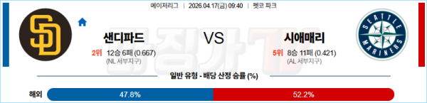 2026-04-17 MLB 샌디에이고 시애틀 MLB분석 무료중계 스포츠분석