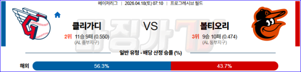2026-04-18 MLB 클리블랜드 볼티모어 MLB분석 무료중계 스포츠분석