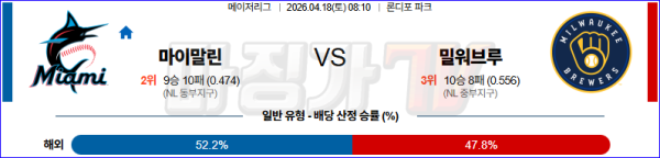 2026-04-18 MLB 마이애미 밀워키 MLB분석 무료중계 스포츠분석