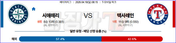 2026-04-19 MLB 시애틀 텍사스 MLB분석 무료중계 스포츠분석