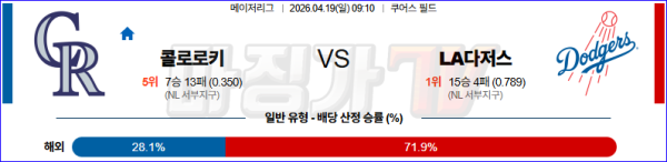 2026-04-19 MLB 콜로라도 LA다저스 MLB분석 무료중계 스포츠분석