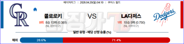 2026-04-20 MLB 콜로라도 LA다저스 MLB분석 무료중계 스포츠분석