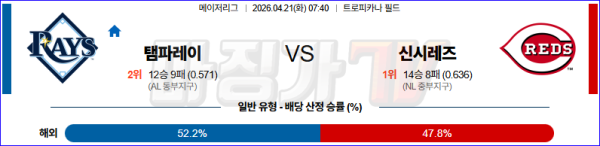 2026-04-21 MLB 탬파베이 신시내티 MLB분석 무료중계 스포츠분석