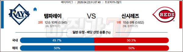 2026-04-22 MLB 탬파베이 신시내티 MLB분석 무료중계 스포츠분석