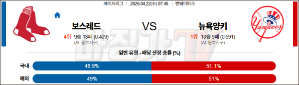 2026-04-21 MLB 보스턴 뉴욕양키스 MLB분석 무료중계 스포츠분석