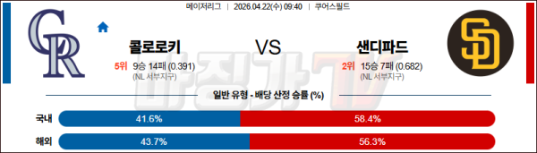 2026-04-22 MLB 콜로라도 샌디에이고 MLB분석 무료중계 스포츠분석