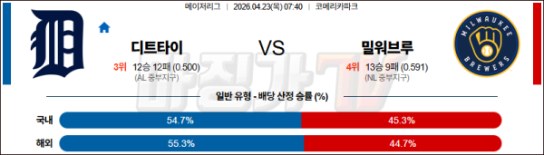 2026-04-23 MLB 디트로이트 밀워키 MLB분석 무료중계 스포츠분석