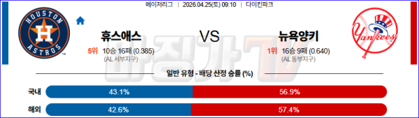 2026-04-25 MLB 휴스턴 뉴욕양키스 MLB분석 무료중계 스포츠분석