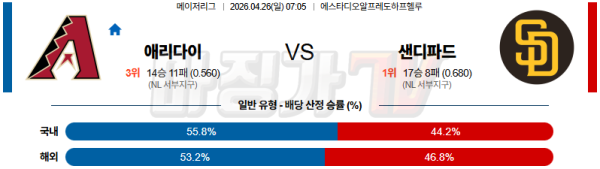 2026-04-26 MLB 애리조나 샌디에이고 MLB분석 무료중계 스포츠분석