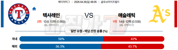 2026-04-26 MLB 텍사스 애슬레틱스 MLB분석 무료중계 스포츠분석